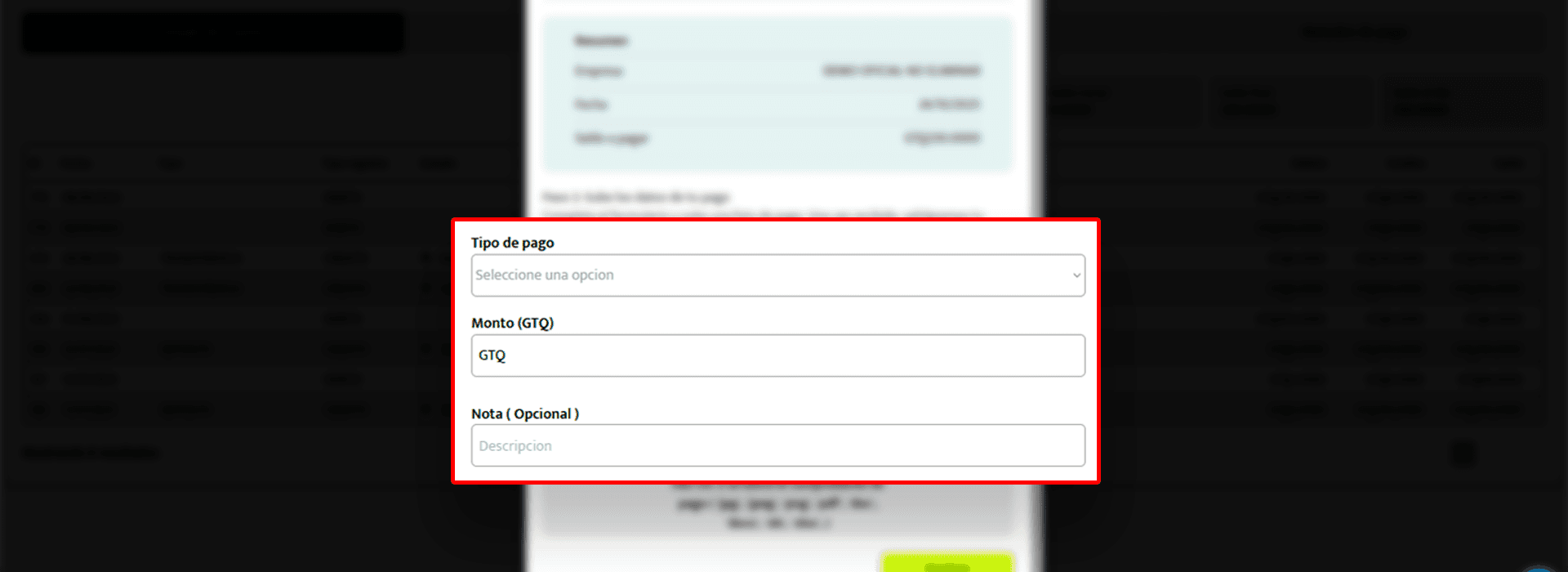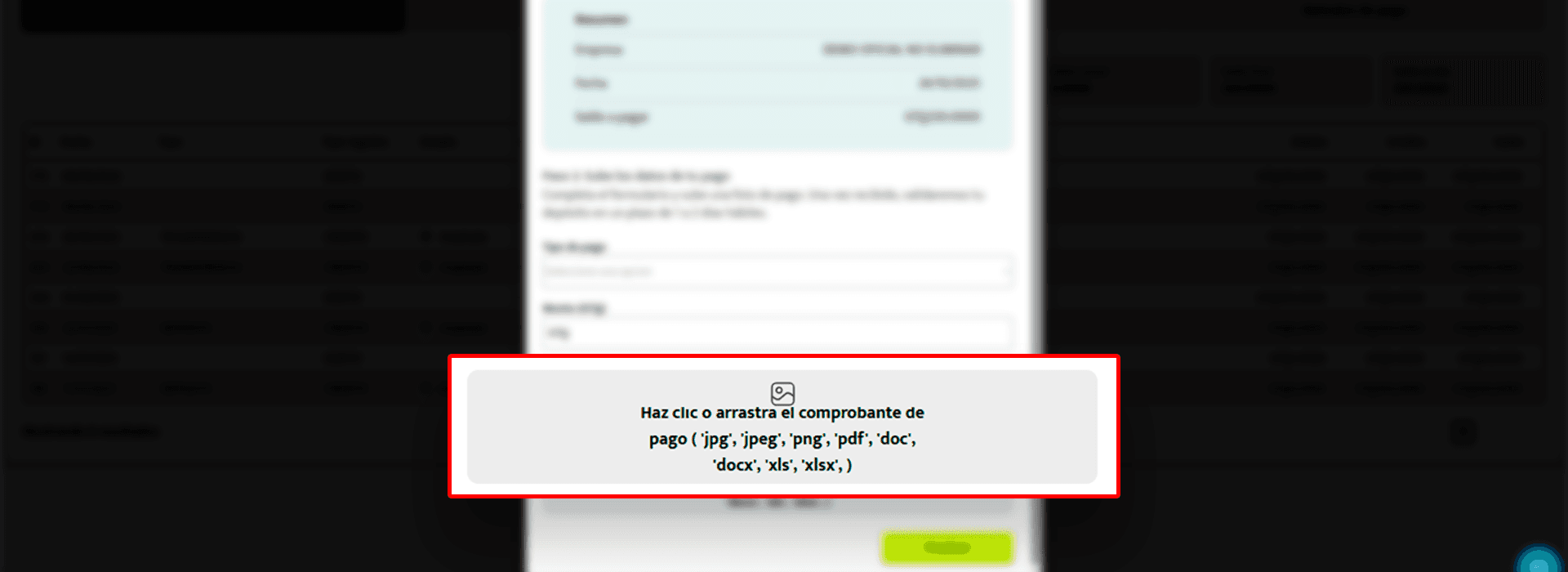 Tipo de pago: selecciona entre “Transferencia” o “Depósito”.