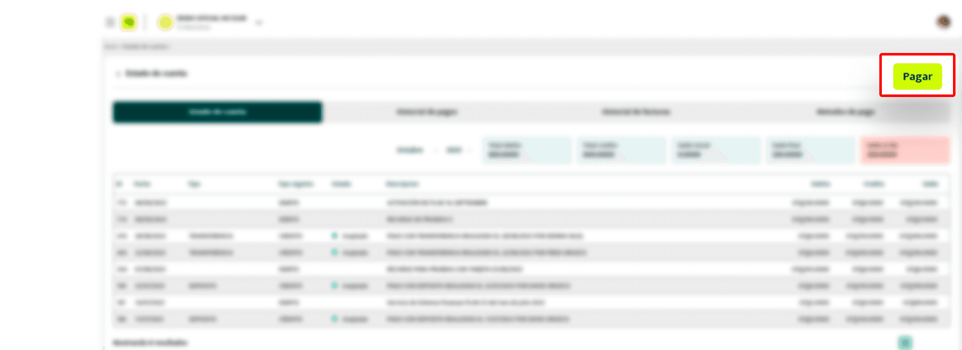 Una vez que te ubiques en el módulo de “Estado de cuenta”, verás en la esquina superior derecha el botón “Pagar”.