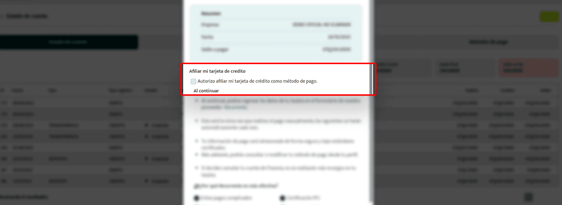 -Al hacerlo, estarás autorizando a Finanzia a usar tu tarjeta como método de pago predeterminado para tus cuotas mensuales.