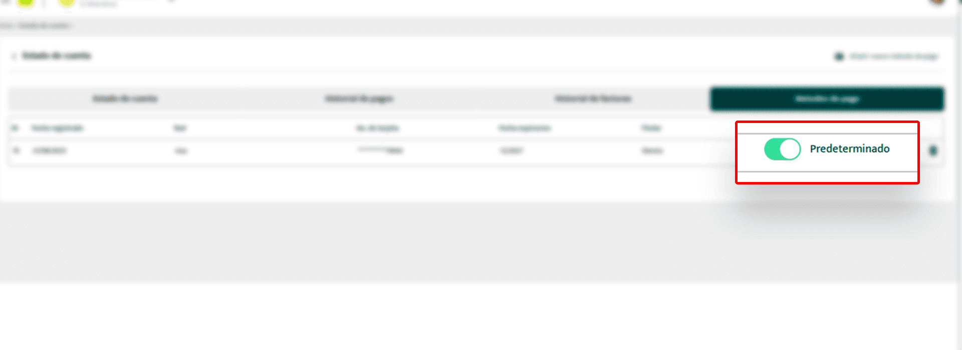 -Si el switch está activado , esa tarjeta será la predeterminada para tus pagos.