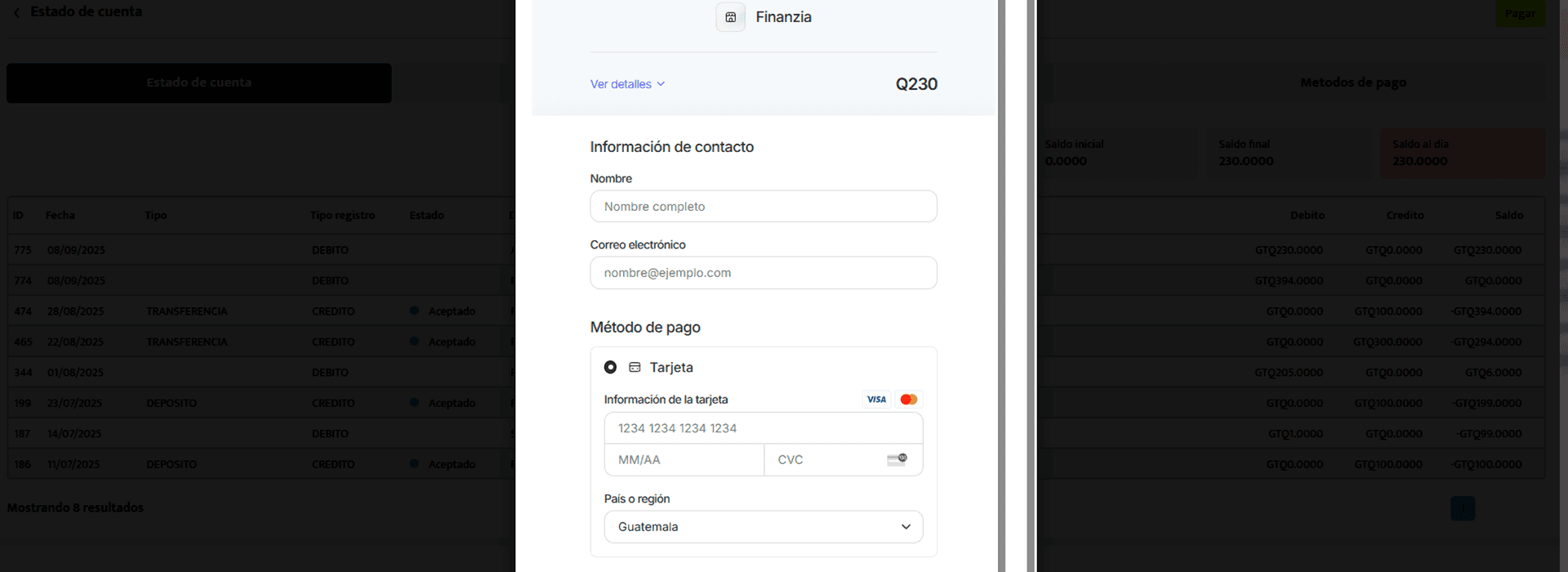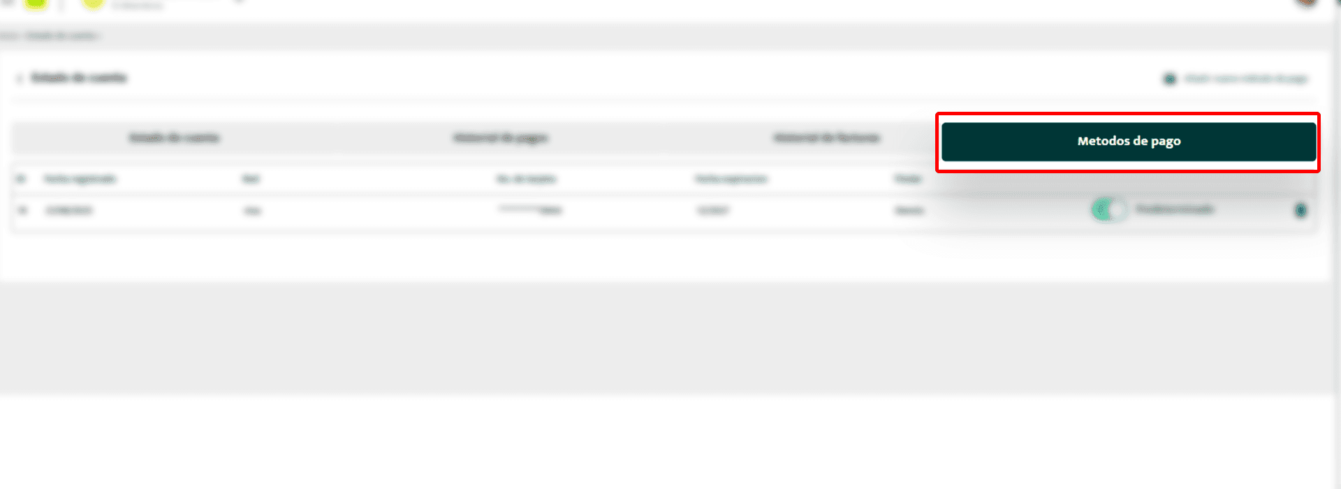 En esta sección podrás administrar los diferentes métodos de pago que utilizarás en Finanzia.