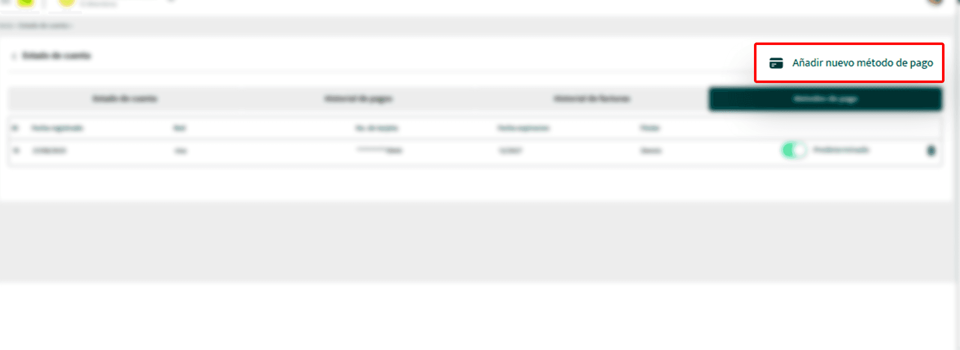 En la parte superior derecha encontrarás el botón “Añadir nuevo método de pago”.