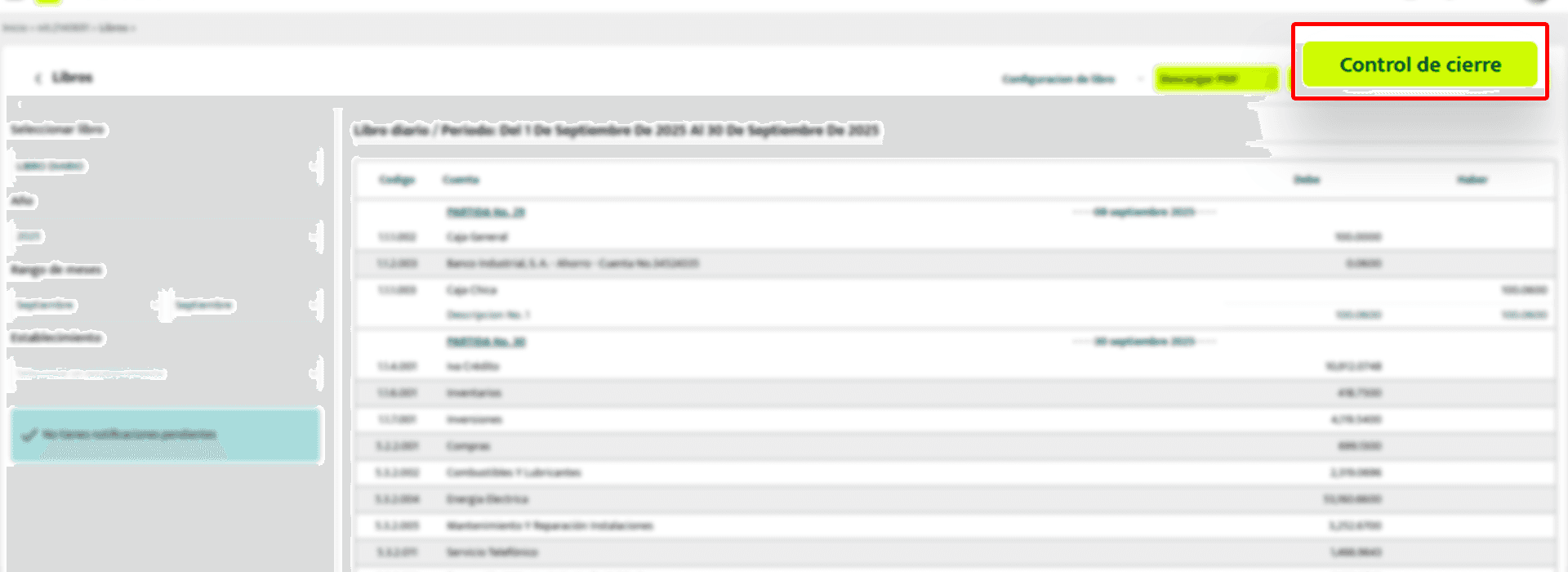 📊 Orden y control: una vez cerrado el mes, garantizas que todos los documentos y partidas queden consolidados y no puedan modificarse accidentalmente.